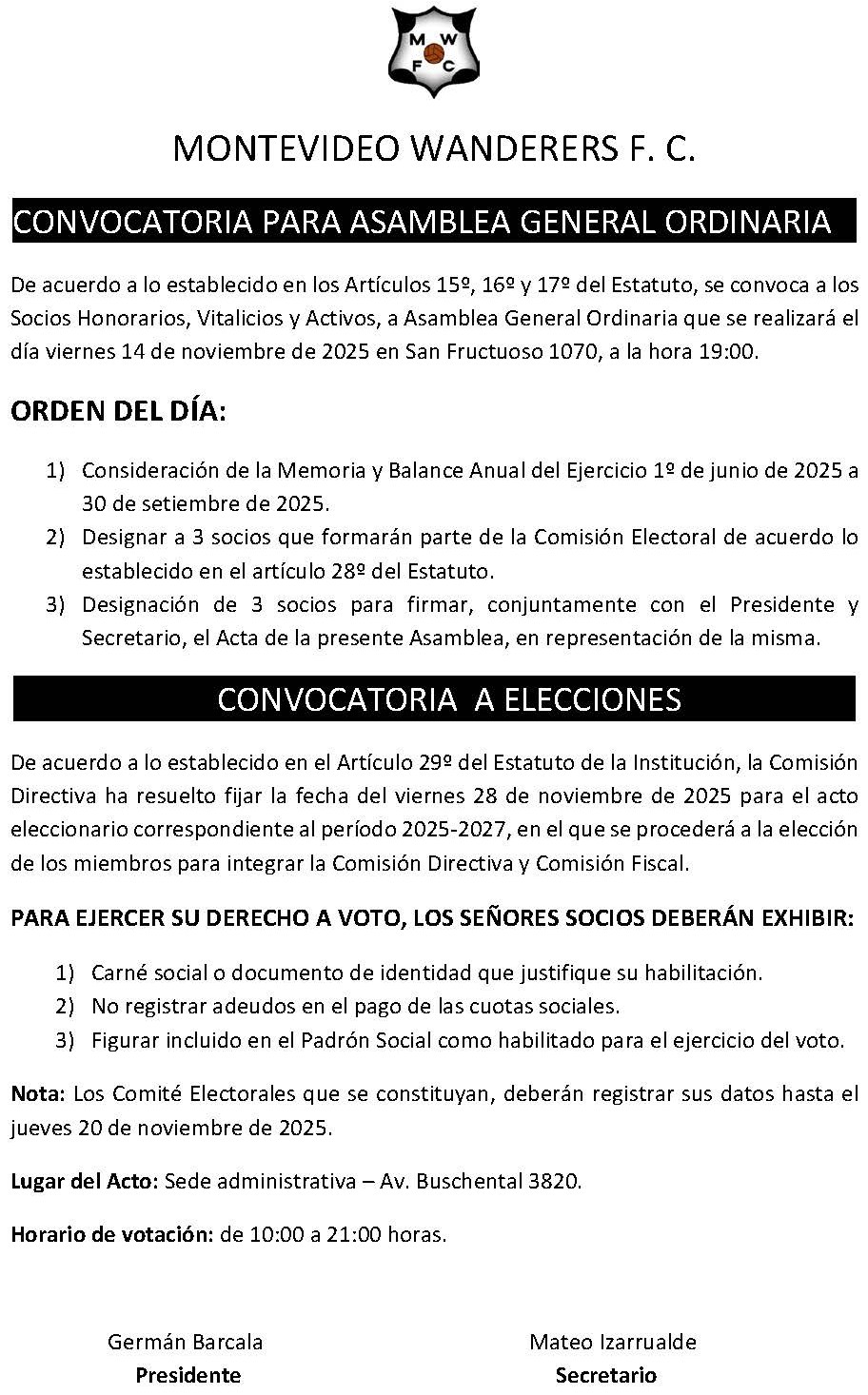 Convocatoria para Asamblea General Ordinaria y Elecciones Período 2025 - 2027